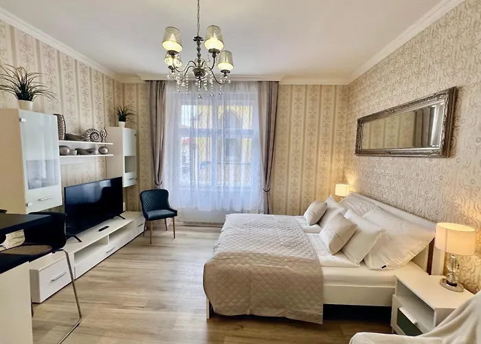 Obiekt noclegowy oferuje gościom aneks kuchenny z kuchenką mikrofalową, czajnikami elektrycznymi i lodówką. Obiekt został zaprojektowany z myślą o wygodzie i relaksie Gości, a jego wyposażenie obejmuje urządzenie do parzenia kawy/herbaty. W 500 metrach znajduje się lokal Hard Rock Cafe, w którym serwują dania kuchni amerykańskiej. Ten apartament znajduje się 20 km od lotniska Praga im. Václava Havla.